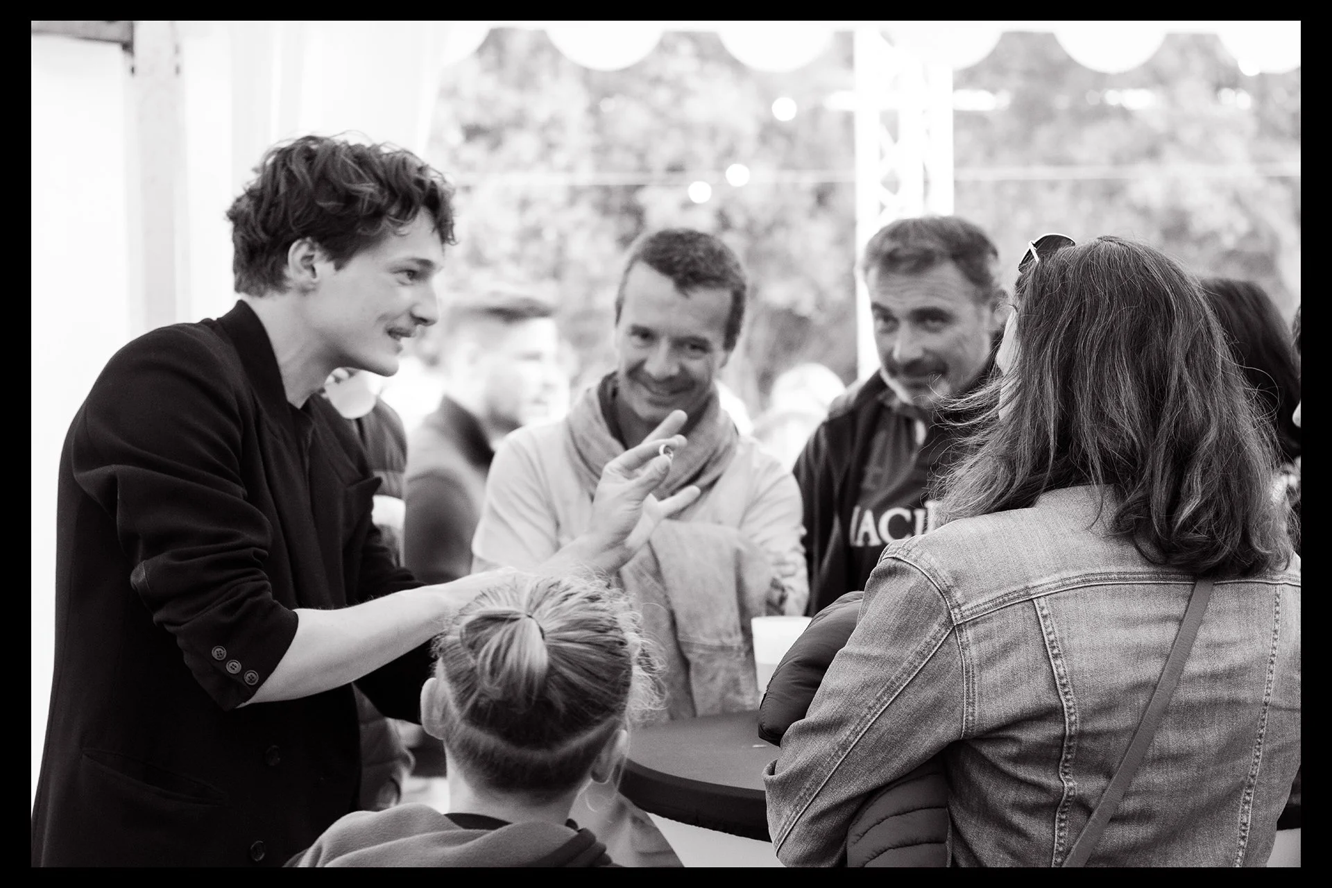 De table en table, de convive en convive, Ernest déambule, produisant des tours d’illusion au plus près des spectateurs.
